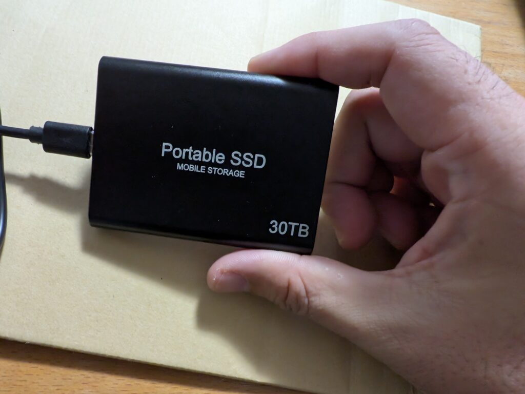 30TB外付けSSDを謳うAmazonの詐欺商品を検証
